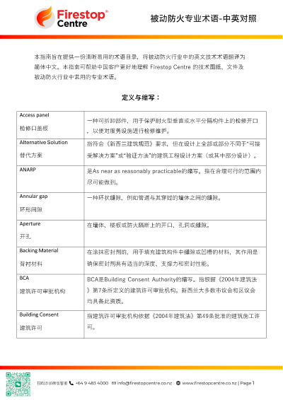 Firestop Centre是新西兰领先的防⽕解决⽅案供应商之⼀,拥有超过 18 年⾏业经验,提供350+款经过测试与认证的防⽕封堵系统。